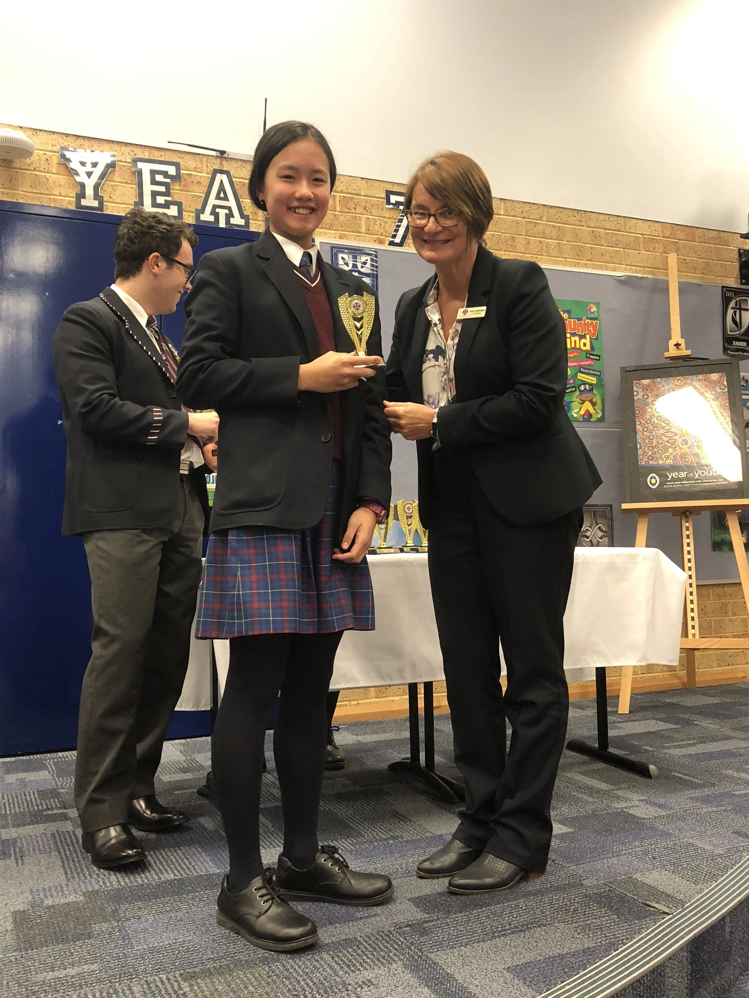 An evening such as this would not be possible without the support of so many people. Thank you to the parents and families of the students for their ongoing support and for being such an enthusiastic audience. Thanks to all the adjudicators on the evening; past students Sean Yoong, Mallorie Gan, Daniel Thomas, Wai Sin Wan, Tiarna Petterson, Rebekah Craggs, Brielle Petterson and Olivia Fuderer. It is wonderful to see these young adults return to the College and once again assist on the evening, which has become a real tradition for this competition. The task to choose winners and runners up was daunting, with many adjudicators commenting on the high standard of the speeches. In addition, I would like to thank Corran O’Brien and Jessica De Freitas Basilio who were the Masters of Ceremony for the evening. Corran’s jokes and Jessica’s ‘getting to know you’ activities kept the audience amused when there was a lull between speakers. Other student leaders; Kayla Weekes, Natasha Uniewicz and Charli Lill carried out so many roles including chairing, setting up and time keeping. Many thanks to those students.