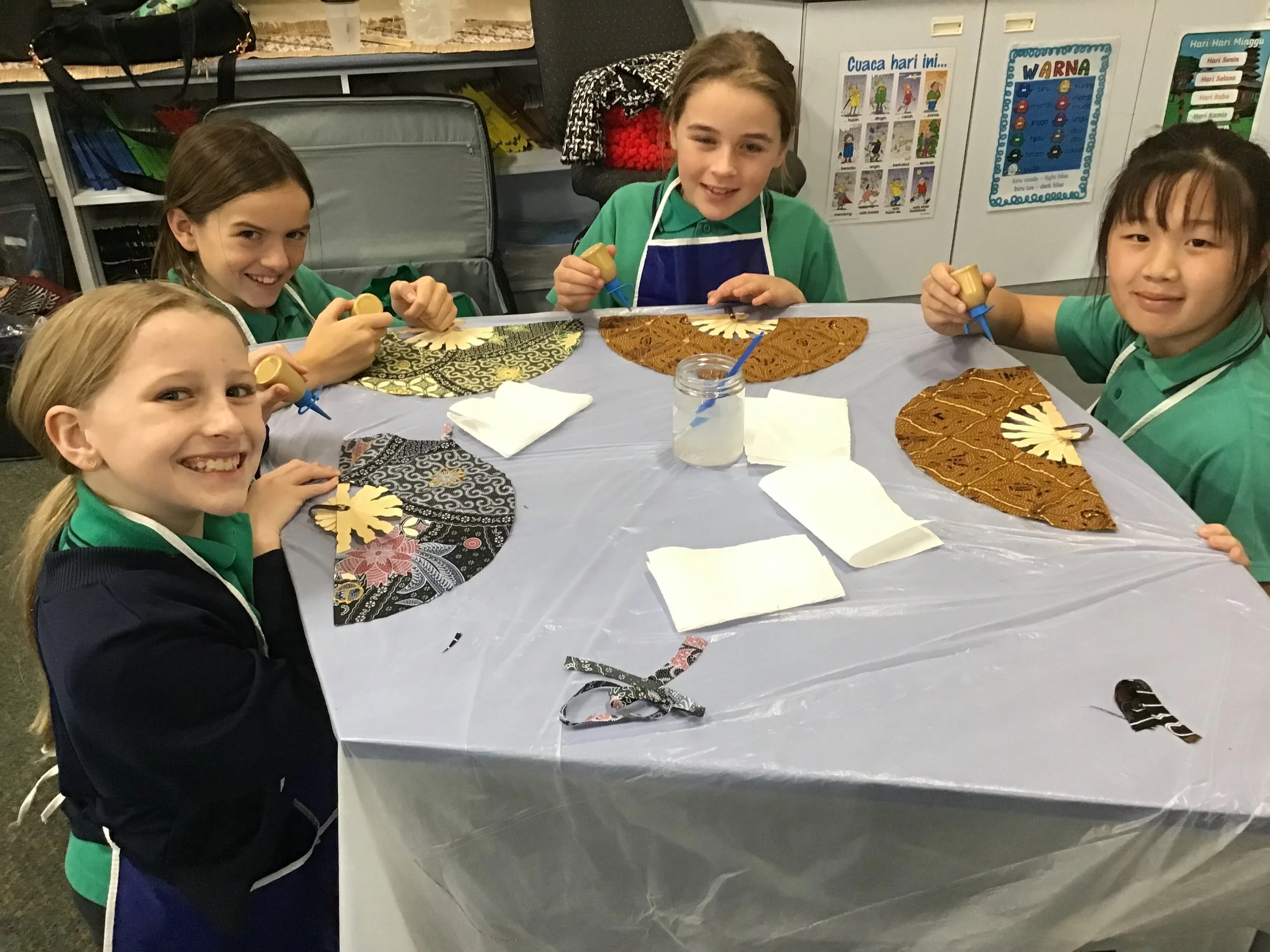 Our Year Five and Six students enjoyed the delicate skill of making and decorating batik fans which looked very impressive. This was the first time a Primary School in Perth has made batik fans/umbrellas through Indonesia Dance Studios and it was a great success. The students are to be congratulated for their excellent manners, enthusiasm and patience when trying something new. Well done everyone!